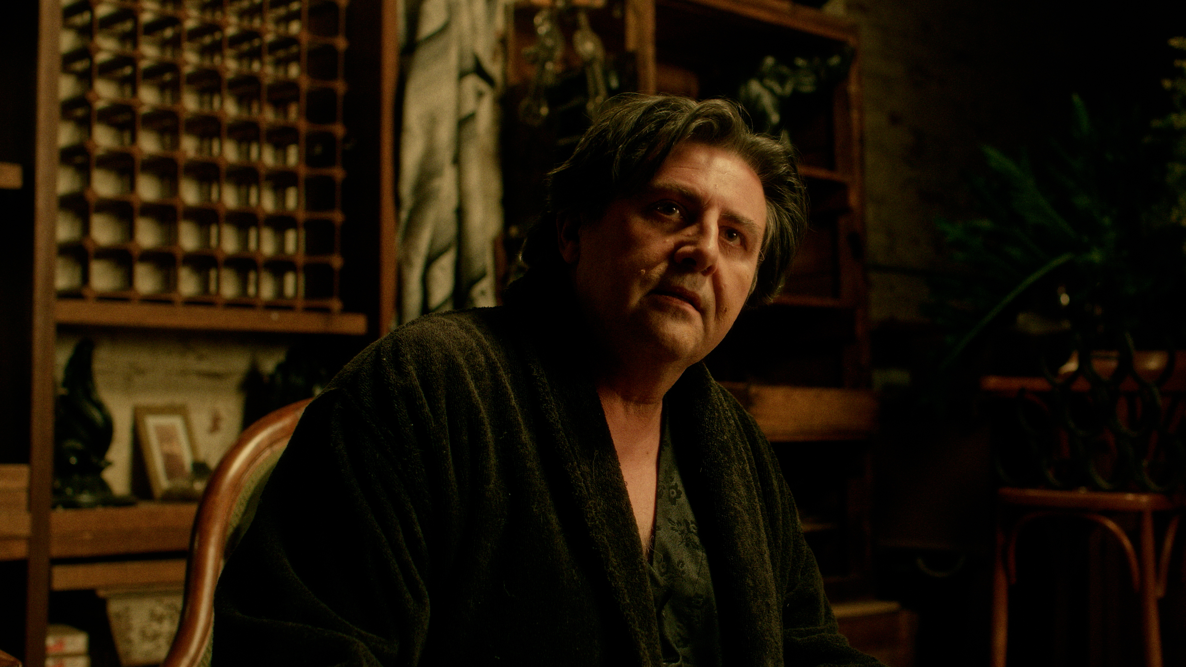 the present. Diego isn't lying about getting old. Washing his face is hard. Crushing his tablets is hard.